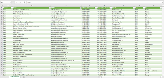 Adressen aller Cafés in der Schweiz