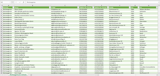Unsere Datenbank beinhaltet Telefonnummern für nahezu alle Einträge, im schweizerischen und internationalen Format, sodass diese problemlos zu Ihrer Vertriebssoftware passen.